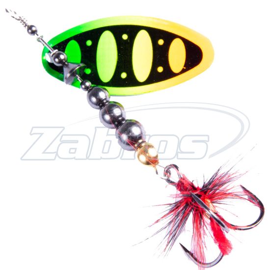 На всех тройниках блесны Lucky John Shelt Blade Tungsten Body связана яркая мушка. Эта мушка не только создает дополнительный визуальный раздражитель, привлекая внимание рыбы, но и эффективно скрывает жало тройника, делая его менее заметным. Мушка служит дополнительной точкой прицеливания для хищника, а ее основное предназначение - снять последние сомнения у приготовившейся к атаке рыбы, провоцируя решительную поклевку.