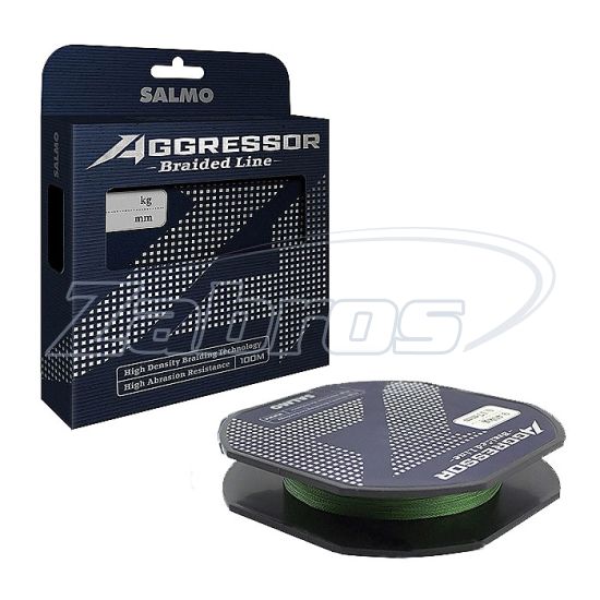 Шнур Salmo Aggressor Braid, 4908-013, 0,13 мм, 6,1 кг, 100 м, Green