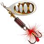 Металлические шарики-подшипники и конус-отражатель предназначены для легкого вращения лепестка на оси и препятствуют его "залипанию". Жесткая дужка крепления лепестка, выполненная из стальной расклепанной и просверленной по торцам проволоки, обеспечивает ему полную свободу вращения при минимальном трении о ось приманки. Это гарантирует бесперебойную работу блесны даже в самых сложных условиях.