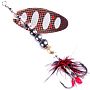 На всех тройниках блесны Lucky John Shelt Blade связана яркая мушка. Эта мушка выполняет несколько важных функций: