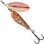 Вместо передней петли на оси блесны вмонтирован вертлюжок, который вместе с асимметричным сердечником, максимально уменьшает закручивание шнура во время рыбалки. Лепесток имеет рельефную текстуру в виде чешуи рыбы, что создает в воде дополнительные привлекательные блики.