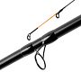 Стыковочные узлы колен выполнены по надежной технологии X Power Joint, которая сохраняет идеальную параболу изгиба без потери прочности на соединениях. Внешняя часть бланка имеет специальное гладкое покрытие Slick Surface, отталкивающее влагу и предотвращающее прилипание мокрой лески. Рукоять удилища имеет комбинированный дизайн: она выполнена из классической натуральной пробки и вставок из практичного материала EVA высокой плотности. Анатомический профиль нижней части ручки обеспечивает надежный хват во время силового броска. В комплекте с удилищем поставляются три сменные вершинки (квивертипы) с посадочным диаметром 2.4 мм: одна из мягкого стекловолокна и две из звонкого карбона.