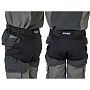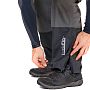 Штаны имеют высокую посадку и оснащены эластичными регулируемыми лямками, которые можно отстегнуть. Объем талии настраивается с помощью липучек Velcro. Внизу штанин предусмотрены молнии с клапанами, позволяющие надевать их поверх объемных сапог.