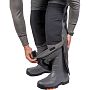 Штаны с высокой грудкой оснащены регулируемыми лямками. Эргономичный крой коленей и седалища усилен износостойкой тканью. Главная "фишка" для любителей ловли с колен - это съемные мягкие вставки в зонах коленей и седалища. Они работают как встроенные наколенники, защищая суставы от холода и жесткого льда. Внизу штанин расположены молнии с клапанами, позволяющие надевать комбинезон поверх широких сапог.