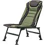 Стильный дизайн и практичная расцветка: Кресло выполнено в строгом темно-зеленом цвете с черным подголовником, что делает его не только практичным, но и стильным аксессуаром для рыбалки.