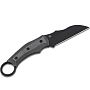 Тактическая готовность: Черное антибликовое покрытие и возможность фиксации пальца в кольце делают этот нож отличным вариантом для самообороны или скрытого ношения.