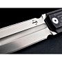 Boker Plus Omerta - разработанный Джейсоном Стаутом , Omerta представляет собой чистокровный кинжал с симметрично заточенным лезвием и прямой рукоятью. Клинок кинжала из D2 имеет прочную отделку Stonewash и ярко выраженный желобок. Трехмерные фрезерованные рукоятки изготовлены из нескользящего G10 и имеют прекрасную текстуру и канавки, улучшающие захват. Сатинированная конструкция полного хвостовика абсолютно готова к действию и всегда под рукой благодаря адаптеру для ремня и плотно прилегающему чехлу из Кайдекса.