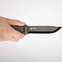 Главная особенность модели - цельнометаллическая конструкция (Full-Tang). Хвостовик клинка проходит сквозь всю рукоять и выступает на торце в виде мощного стеклобоя. Клинок длиной 109 мм выкован из высокоуглеродистой немецкой стали (Carbon Steel C100S) и закален до показателя 57,5 HRC. Принудительная толщина обуха составляет внушительные 3,2 мм, что превращает этот походный нож в настоящий тактический лом, способный выдерживать удары по обуху при раскалывании поленьев (батонинге).