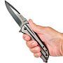 Фиксация клинка осуществляется замком Liner-Lock, пластина которого слегка увеличена для удобства работы одной рукой. Извлечение клинка происходит с помощью флиппера или двухстороннего шпенька.
