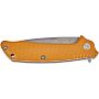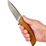 Накладки на рукоять выполнены из прочного стеклотекстолита G-10, что обеспечивает надежный хват даже в сложных условиях. Отверстие для темляка и стальная клипса позволяют носить нож в удобном положении Tip-up.