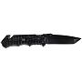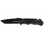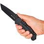 Фактурные накладки на рукоять выполнены из прочного алюминия, что обеспечивает надежный хват даже в сложных условиях. Стропорез и стеклобой, расположенные на рукояти, делают этот нож еще более функциональным.