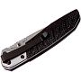 Рукоять выполнена из легкого и прочного алюминия. На поверхности нанесены специальные фрезерованные канавки и мелкая текстура, которые обеспечивают уверенный хват и предотвращают скольжение ладони. Для безопасности эксплуатации предусмотрен замок типа Linerlock, который надежно фиксирует лезвие в открытом положении. Открытие ножа осуществляется одной рукой при помощи съемного двухстороннего шпенька (thumbstud), что делает его эксплуатацию максимально оперативной.