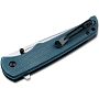 Рукоять изготовлена из микарты синего цвета. Этот композитный материал славится своей долговечностью и приятными тактильными ощущениями. Особенность микарты в том, что она обеспечивает надежное сцепление с ладонью, даже если руки мокрые. За безопасность и удобство отвечает современный замок Button Lock, который позволяет мгновенно складывать нож нажатием кнопки. Для открытия предусмотрены сразу два варианта: двусторонний шпенек и выраженный флиппер.