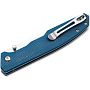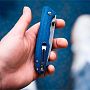 Особого внимания заслуживает рукоять, выполненная из микарты (Canvas Micarta) глубокого синего цвета. Этот композитный материал славится своей долговечностью и уникальной текстурой, которая обеспечивает невероятно надежный хват, даже если ваши руки мокрые. За безопасность отвечает проверенный временем замок Linerlock, а открытие ножа осуществляется плавно благодаря двухстороннему шпеньку, что делает его одинаково удобным как для правшей, так и для левшей.