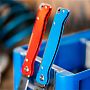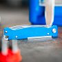 Рукоять выполнена из нержавеющей стали с износостойким лаковым покрытием синего цвета. Конструктивно нож является Slipjoint - это механизм без жесткой фиксации, где клинок удерживается в открытом положении мощной пружиной. Такое решение является данью классике и делает использование ножа интуитивно понятным и безопасным при выполнении стандартных работ. Открытие производится двумя руками с помощью ногтевой выемки (Nail Nick).