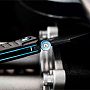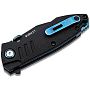 Рукоять выполнена из термопластика GFN (Glass Filled Nylon). Это стеклонаполненный нейлон, который сочетает в себе легкость пластика и прочность металла. Текстурированная поверхность плашек гарантирует надежное сцепление с ладонью. Внутри скрыт механизм Spring Assisted (подпружиненный ассист). При нажатии на флиппер или съемную "таблетку" на обухе, клинок мгновенно выстреливает и фиксируется замком Linerlock. Особый шарм модели придают анодированные в синий цвет лайнеры, клипса и спейсер, создающие эффектный контраст с черным корпусом.