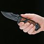 Клинок модели изготовлен из американской нержавеющей стали 440C. В отличие от более простых сплавов (вроде 440A), эта марка стали обладает повышенным содержанием углерода, что обеспечивает длительное удержание остроты режущей кромки и агрессивный рез. Лезвие имеет черное защитное покрытие, которое предотвращает блики и дополнительно оберегает металл от воздействия влаги. Профиль клинка с выраженным острием позволяет выполнять как силовые работы, так и точные манипуляции.