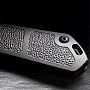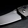 Карманный нож имеет лезвие черным покрытием или стоунвош из AUS-8, напоминающее классический японский меч. Он открывается кнопкой. Черные накладки на рукояти изготовлены из легкого алюминия с текстурными элементами. С отверстием для темляка, короткой клипсой (наконечник) и высококачественным нейлоновым футляром для хранения.