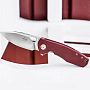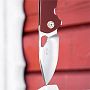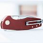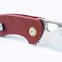 Эстетика деталей: Дизайнер уделил внимание мелочам: латунный бэкспейсер и кольцо вокруг осевого винта создают красивый контраст с бордовой рукоятью и стальным клинком. Звездообразный осевой винт добавляет инструменту индивидуальности.