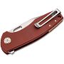 Рукоять выполнена из прочного композита G10 насыщенного бордового цвета (Burgundy / Wine Red). Текстура накладок обеспечивает надежное сцепление с ладонью. Механика ножа вариативна: открыть его можно как с помощью плавника (флиппера), так и через каплевидное отверстие в клинке. Плавность хода обеспечивают подшипники в осевом узле. Фиксация осуществляется мощным стальным лайнером замка Linerlock.