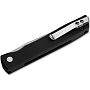 Рукоять изготовлена из высокопрочного алюминия с черным анодированием. Это позволило добиться рекордного веса - всего 51 грамм при полноразмерном клинке. Конструкция рукояти монолитна и приятна на ощупь. Механика ножа претерпела значительные улучшения: используется обновленная плоская проволочная пружина, гарантирующая мощный и безотказный выброс клинка. Увеличенная кнопка Button Lock обеспечивает интуитивное управление - нажатие не только открывает нож, но и надежно фиксирует лезвие, а также позволяет легко сложить его одной рукой.