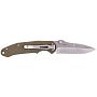 Мелкое рифление накладок на рукоятку, изготовленных из стеклотекстолита G10, обеспечивает надежное удержание. Клинок изготовлен из стали 8Cr14MoV. Клинок открывается одной рукой при помощи двустороннего шпенька и фиксируется в открытом положении замком лайнерлок. Клипса предполагает глубокую посадку в карманах одежды. Также предусмотрено отверстие под темляк.
