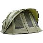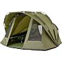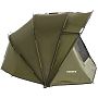 Простор для двоих - комфорт и удобство: Размеры палатки позволяют комфортно разместиться двум взрослым людям. Внутри палатки свободно помещаются две карповые раскладушки, обеспечивая максимальный комфорт во время сна.