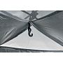 Вход-выход продублирован антимоскитной сеткой, что обеспечивает комфортную вентиляцию в жаркую погоду. Основной вход и сетка оснащены двусторонней фурнитурой, что позволяет удобно открывать и закрывать их как снаружи, так и изнутри. Купол палатки выполнен из сетки и защищен сверху небольшим тентом.