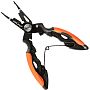 Режущая кромка, с одной стороны, представляет собой микропилочку, благодаря которой легко и без усилий режет любую леску или шнур. Также плоскогубцы оснащены разжимом для небольших заводных колец, позволяющим быстро заменить крючки на маленьких приманках. Эргономичные прорезиненные ручки делают их удержание удобным и комфортным, а подпружиненная конструкция помогает работать одной рукой.