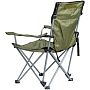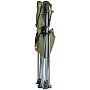 Кресло без усилий трансформируется в шезлонг. Снизу предусмотрены фиксаторы, благодаря которым регулируется наклон в 3-х положениях. Чтобы подлокотники не провисали, дополнительно предусмотрены ремни натяжения. Кресло легко складывается до компактных размеров в чехол с плечевым ремнем