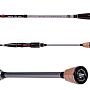 Рукоять выполнена в разнесенном стиле, сочетая практичный EVA и карбоновые элементы. Катушкодержатель Fuji TVS с карбоновой гайкой обеспечивает прямой контакт пальцев с бланком, передавая малейшие касания рыбы или структуру дна.
