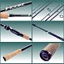 Graphiteleader Vigore Nuovo - серия спиннинговых удилищ на бланках из высокомодульного углепластика средне-быстрого и быстрого строя. Оснащено качественными пропускными кольцами в титановой оправе и противозахлестным тюльпаном. Рукоять, с удобным винтовым катушкодержателем и декоративной зажимной гайкой, разнесена на две части и выполнена из коркового материала.
