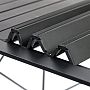 Быстрая и простая сборка/разборка - экономия времени и удобство использования: Сборка и разборка стола занимает считанные секунды и не требует специальных навыков или инструментов. Необходимо просто вынуть стол из чехла, развернуть конструкцию, зафиксировать профиль в специальные пазы и сверху прикрепить столешницу.