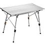 Столешница и каркас выполнены из прочного алюминия, благодаря чему стол способен выдерживать нагрузку до 20 кг. Оснащен специальными пластиковыми наконечниками, которые делают его более устойчивым. Комплектуется нейлоновым чехлом для удобства хранения и безопасной транспортировки.