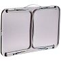 Столешница представляет собой ламинированную плиту из МДФ, каркас выполнен из алюминиевых трубок, способных выдерживать нагрузку до 20 кг. Сбоку удобная ручка для переноски. Оснащен специальными пластиковыми наконечниками, которые делают его более устойчивым.