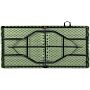 Выбирая надежное туристическое снаряжение для массовых выездов, важно учитывать его транспортировочные габариты и запас механической прочности. Рабочая столешница этой модели выполнена из толстого ударопрочного пластика, который совершенно не боится обильной влаги, прямых солнечных лучей и царапин. Несущий каркас и складные ножки изготовлены из крепкого трубчатого металла, благодаря чему массивная конструкция уверенно выдерживает колоссальную статическую нагрузку до 100 килограммов.