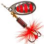 На всіх трійниках блешні Lucky John Bonnie Blade пов'язана яскрава мушка. Ця мушка виконує кілька важливих функцій: