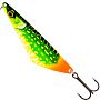 Широка амплітуда. При проводці блешня демонструє розмашисті коливання хвостом та створює потужні відблиски, залучаючи хижака з великої відстані навіть у каламутній воді.