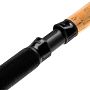Зручна комбінована рукоять виконана з натуральної пробки та практичного матеріалу EVA, що забезпечує максимально комфортний хват при інтенсивних силових закиданнях та подальшому виважуванні. Міцний гвинтовий катушкотримач надійно та жорстко фіксує лапку котушки, повністю виключаючи паразитний люфт механізму. У комплекті з вудилищем поставляються три змінні вершинки (квівертипи) різної міри жорсткості. Це дозволяє рибалці тонко адаптувати чутливість бланка під будь-яку актуальну вагу годівниці та конкретну силу течії.