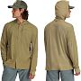 Основа цього худі - гібридна конструкція із двох типів тканини, розташованих відповідно до потреб рибалки. Передня частина торса та верхня частина рукавів виконані з легкого, але міцного плетеного поліестеру ріпстоп. Цей матеріал має підвищену зносостійкість і забезпечує базовий захист від вітру під час руху на човні. Капюшон, спина, бічні панелі та нижня частина рукавів виготовлені з високотехнологічного трикотажного матеріалу SolarFlex. Він неймовірно еластичний, повторюючи кожен рух рибалки під час закидання, і забезпечує максимальну паропроникність, ефективно відводячи вологу від тіла.