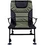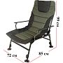 Адаптація до будь-якого рельєфу місцевості завдяки регульованим ніжкам: Кожна з чотирьох ніжок крісла регулюється по висоті в межах 10 см, що дозволяє встановити крісло ідеально рівно та стійко на будь-якій нерівній поверхні. Діапазон регулювання висоти сидіння від підлоги становить 35-44,5 см, дозволяючи підібрати оптимальну висоту для будь-якого рибалки та типу берега.
