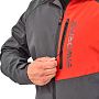 Крій куртки - анатомічний та вільний. Центральна застібка являє собою повнорозмірну водозахисну блискавку з внутрішнім клапаном, що запобігає продуванню. Високий комір-стійка переходить у регульований капюшон, який надійно вкриває голову та шию. Для зберігання спорядження та гаджетів передбачена продумана система кишень: одна нагрудна та дві бічні з вологозахисними блискавками, а також два внутрішні відсіки для документів. Об'єм манжет і нижньої частини куртки легко регулюється, дозволяючи створити герметичний контур.