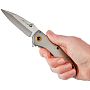 Фіксація клинка здійснюється замком Frame-Lock, пластина якого має насічку для зручності роботи однією рукою. Витягування клинка відбувається за допомогою фліпера або двостороннього шпенька, а асист у конструкції осьового гвинта забезпечує плавне та швидке відкриття.