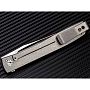 Руків'я виготовлене з високоякісного титану. Використання цього аерокосмічного металу дозволило домогтися високої міцності при мінімальній вазі. Плашки руків'я мають декоративні висвердлені отвори, які не тільки служать дизайнерським елементом, а й додатково полегшують конструкцію. Механіка ножа працює на шарикопідшипниках: клинок плавно і миттєво вилітає при натисканні на компактний плавець (фліпер). У відкритому положенні лезо надійно фіксується титановим замком Framelock, який є частиною руків'я.