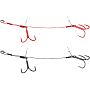 Savage Gear Carbon49 Double Stinger - повідкове оснащення складається з подвійного повідця, виготовленого з покритого оболонкою металевого 49-ниткового тросика Carbon49 і трійників SGY. Поруч із верхньою петелькою є монтажна трубочка з еластичного силікону, що дозволяє надійно зафіксувати петельку на вушці, грузила або джиг-головки.