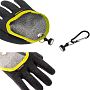 Однією з головних особливостей моделі Pike-II є унікальна система кріплення. Рукавичка оснащена потужним магнітним тримачем, з'єднаним із карабіном. Це дозволяє зафіксувати її на D-подібному кільці рибальського жилета, поясі штанів або на сумці. У потрібний момент рукавичка від'єднується від магніта одним рухом, а після використання так само легко повертається на місце, буквально притягуючись до тримача. Вам не потрібно шукати її по кишенях або турбуватися, що вона впаде у воду - вона завжди під рукою і готова до роботи.