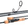 Конструкція вудилищ Rapture LMF IM7 Trout Spining являє собою двоскладові бланки, що забезпечують оптимальне поєднання чутливості та потужності. Руків'я вудилищ виконане з високоякісної натуральної пробки, розділене для кращого контролю над вудилищем при закиданні як двома руками, так і з-під руки - техніки, що часто використовуються при ловлі у важкодоступних місцях. Розділене руків'я також сприяє зниженню ваги вудилища та покращує його баланс, що особливо важливо при тривалій ловлі.