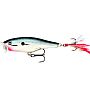 Висока реалізація покльовок. Задній трійник з оперенням працює як парашут, стабілізуючи приманку при закиданні, і як мішень при атаці. Щука та жерех часто б'ють саме в хвіст, надійно засікаючись за замаскований гачок.
